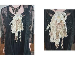 A vintage, reworked cream wedding dress. It has been repaired, cleaned and altered adding crochet style fabric over the shoulders and features the prettiest lace in the dress. One of a kind, hand made, eco-friendly bohemian style dress.